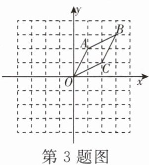 3. 如图,在平面直角坐标系中,已知菱形 $ OABC $ 的顶点 $ A(1,2),B(3,3) $. 作菱形 $ OABC $ 关于 $ y $ 轴的对称图形 $ OA'B'C' $,再作图形 $ OA'B'C' $ 关于点 $ O $ 的中心对称图形 $ OA''B''C'' $,则点 $ C'' $ 的坐标为 ( )