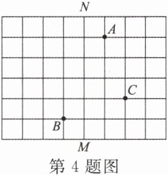 4. 在如图所示的方格纸中,每个小正方形的边长均为 1. 若以 $ MN $ 所在的直线为 $ y $ 轴建立平面直角坐标系,使点 $ A $ 与点 $ B $ 关于原点对称,则这时点 $ C $ 的坐标为 ( )
