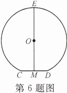 6. 如图所示为一个隧道的横截面,它的形状是以点$O$为圆心的圆的一部分.如果$M是\odot O中弦CD$的中点,$EM经过圆心O交\odot O于点E$,$CD= 10$,$EM= 25$.求$\odot O$的半径.