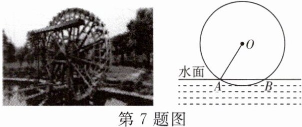 如图,筒车盛水筒的运行轨迹是以轴心$O$为圆心的圆,已知圆心$O$在水面上方,且当圆被水面截得的弦$AB$为6 m时,水面下盛水筒的最大深度为1 m(即水面下方圆上一点距离水面的最大距离).