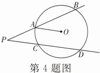 4. 如图,射线$PB$,$PD分别交\odot O于点A$,$B和点C$,$D$,且$AB= CD= 8$.若$\odot O$的半径为5,$OA// PC$,则$OP$的长为______.