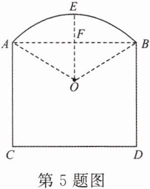 5. 如图,某窗户由矩形和弓形组成,已知弓形的跨度$AB= 4$ m,弓形的高$EF= 1$ m.现计划安装玻璃,求出$\overset{\frown}{AB}所在\odot O$的半径.
