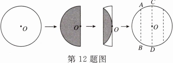 12. 若把一张圆形纸片按如图所示的方式折叠两次后展开,图中的虚线表示折痕,则$\widehat{BC}$所对的圆心角的度数为 ( )
