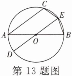 13. 如图,$AB和DE是\odot O$的直径,弦$AC// DE$.若弦$BE= 3$,则弦$CE$的长为______.