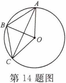14. 如图,$AB$,$BC$,$AC都是\odot O$的弦,且$\angle AOB= \angle BOC$.求证: