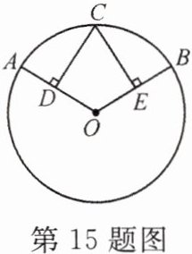 15. 如图,在$\odot O$中,$\widehat{AC}= \widehat{CB}$,$CD\perp OA于点D$,$CE\perp OB于点E$.