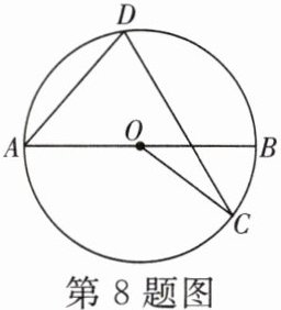8. 如图,AB 是$\odot O$的直径,位于 AB 两侧的点 C,D 均在$\odot O$上,连接 AD,CD,OC,若$\angle BOC= 30^{\circ}$,则$\angle D= $