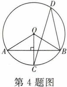 4. 如图,AB 是$\odot O$的弦,$OC\perp AB$,交$\odot O$于点 C,D 是$\odot O$上一点,连接 BD,CD,OA,OB.若$\angle D= 28^{\circ}$,则$\angle OAB$的度数为(