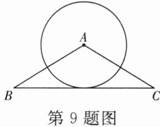 9. 如图,在△ABC 中,AB = AC,$\angle B = 30^\circ$,以点 A 为圆心,3 cm 为半径作$\odot A$,当 AB = ______cm 时,BC 与$\odot A$相切.