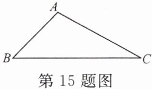 15. 如图,点 A 是一个半径为 300 m 的圆形森林公园的中心,在森林公园附近有 B,C 两个村庄,现要在 B,C 两个村庄间修一条长为 1000 m 的笔直公路将两村连通. 经测量得$\angle ABC = 45^\circ$,$\angle ACB = 30^\circ$,问此公路是否会穿过森林公园?请通过计算说明理由.