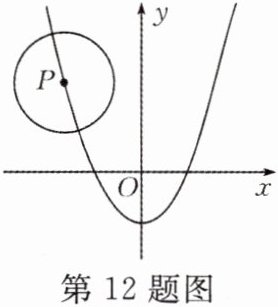 12. 如图,已知$\odot P$的半径为 2,圆心 P 在抛物线$y = \frac{1}{2}x^2 - 1$上运动,当$\odot P$与 x 轴相切时,圆心 P 的坐标为 ______.
