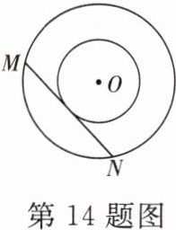 14. 如图,两个同心圆的半径分别为 3 cm 和 6 cm,大圆的弦 MN = $6\sqrt{3}\ cm$,试判断 MN 与小圆的位置关系,并说明理由.