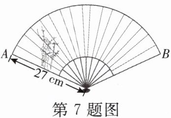 7. 如图,折扇的骨柄长为27 cm,折扇张开的角度为120°,则$\widehat{AB}$的长为