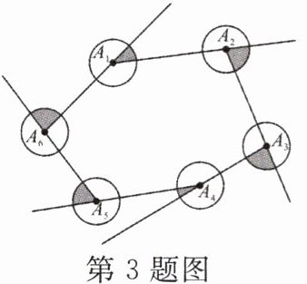 3. 如图,分别以$n$边形的顶点为圆心,以1cm为半径画圆,当$n= 2025$时,图中阴影部分的面积之和为