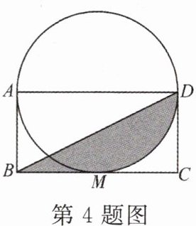 4. 如图,在矩形$ABCD$中,$AB= 1$,以$AD为直径的半圆与BC相切于点M$,求阴影部分面积.