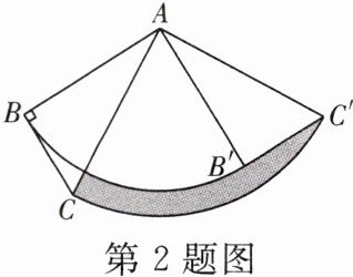 2. 如图,在$\triangle ABC$中,已知$\angle ABC= 90°$,$\angle BAC= 30°$,$BC= 1$.若将$\triangle ABC绕点A逆时针旋转90°后得到\triangle AB'C'$,则图中阴影部分的面积为