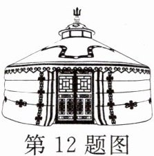 12. 如图,蒙古包可近似看作由圆锥和圆柱组成. 若用毛毡搭建一个底面圆面积为$25π m^2,$圆柱高为 3 m,圆锥高为 2 m 的蒙古包,则需要毛毡的面积为( )
