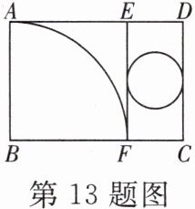 13. 如图,在矩形纸片 ABCD 中,AD= 6 cm,若把它分割成正方形纸片 ABFE 和矩形纸片 EFCD 后,分别裁出扇形 BAF 和半径最大的圆,恰好能作为一个圆锥的侧面和底面,则 AB 的长为( )