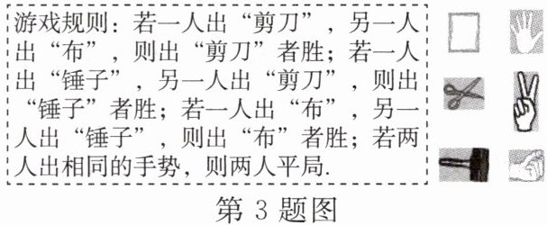 3. 红红和娜娜按如图所示的规则玩“锤子,剪刀,布”游戏. 下列命题中,错误的是( )