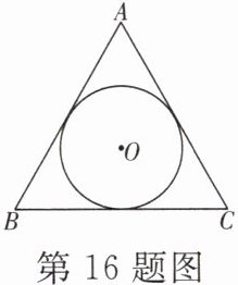 16. 一般地,如果在一次试验中,结果落在区域 D 中每一个点都是等可能的,用 A 表示“试验结果落在 D 中的某个小区域 M 中”这个事件,那么事件 A 发生的概率$P(A)= \frac{M的面积}{D的面积}$. 如图,在等边三角形 ABC 内射入一个点,该点落在△ABC 的内切圆中的概率是
