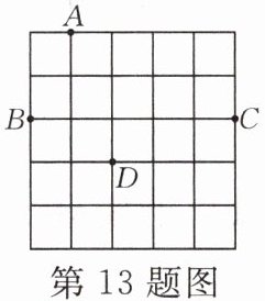 13. 如图,在 5×5 的正方形网格中,从在格点上的点 A,B,C,D 中任取三点,所构成的三角形恰好为直角三角形的概率是 (