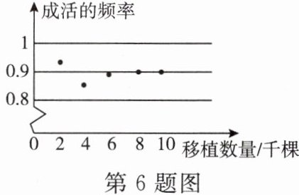 6. 某市林业局积极响应习总书记“绿水青山就是金山银山”的号召,特地考察一种花卉移植的成活率,对本市这种花卉移植成活的情况进行了调查统计,并绘制了如图所示的统计图. 请你根据统计图提供的信息,回答下列问题: