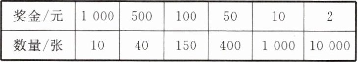 |奖金/元|1 000|500|100|50|10|2|