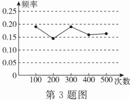 3. 某小组在“用频率估计概率”的试验中,统计了某种结果出现的频率,绘制了如图所示的折线图,符合这一结果的试验最有可能是 ( )