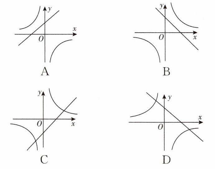 11. 一次函数$y= ax+b与反比例函数y= \dfrac{ab}{x}$(a,b为常数且均不等于0)在同一坐标系内的图象可能是 (
