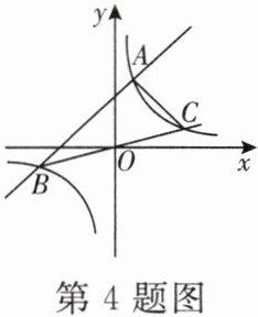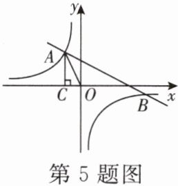 5. 如图,一次函数$ y= mx+n 与反比例函数 y= \frac{k}{x} $的图象分别相交于第二、四象限的点$ A(-2,a) $,$ B(b,-1) $,过点A作x轴的垂线,垂足为C,△AOC的面积为4.