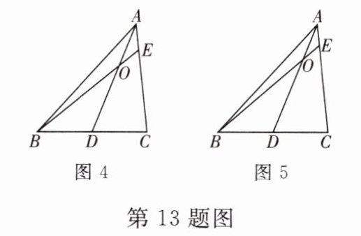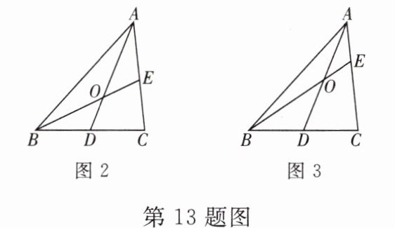 13. [推理能力]如图1,在△ABC中,D为BC边的中点,现取AC边上的任意一点E,连接BE交AD于点O.