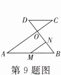 9. 如图,AC,BD相交于点O,AB//DC,M是AB的中点,NO= NB. 若DO∶OB= 1∶2,AC= 12,则MN的长为( )