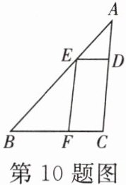 10. 如图,在△ABC中,DE//BC,分别交AC,AB于点D,E,EF//AC,交BC于点F. 若$\frac{AE}{BE}= \frac{2}{5}$,BF= 8,则DE的长为( )