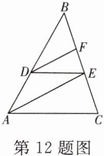 12. 如图,在△ABC中,D,E,F分别是AB,BC上的点,且DE//AC,AE//DF,$\frac{BD}{AD}= \frac{3}{2}$,BF= 9 cm,求EF和FC的长.