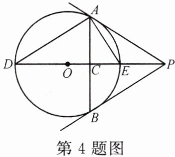 4. 如图,P为⊙O外一点,PA,PB为⊙O的切线,切点分别为A,B,直线PO交⊙O于点D,E,交AB于点C.