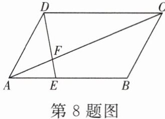 8. 如图,在□ABCD中,E是线段AB上一点,连接AC,DE,相交于点F. 若$\frac{AE}{EB}= \frac{2}{3}$,则$\frac{S_{\triangle ADF}}{S_{\triangle AEF}}= $