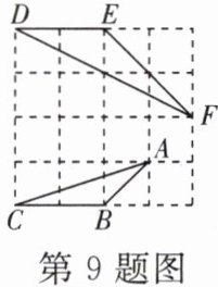 9. 如图,在4×4正方形网格中,每个小正方形的边长均为1,△ABC和△DEF的顶点都在网格线的交点上,设△ABC的周长为$C_1$,△DEF的周长为$C_2$,则$\frac{C_1}{C_2}$的值为