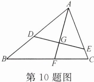 10. 如图,在△ABC中,D,E分别是AB,AC上的点,∠AED= ∠B,AD= 2,AC= 3,△ABC的角平分线AF交DE于点G,交BC于点F.