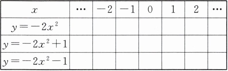 (1)填表:|x|...|-2|-1|0|1|2|...||y=-2x²||-8|-2|0|-2|-8||y=-2x²+1||-7|-1|1|-1|-7||y=-2x²-1||-9|-3|-1|-3|-9|