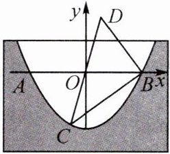 13.某水渠的横截面呈抛物线形,水面的宽为$AB$(单位:米).现以$AB所在的直线为x$轴,以抛物线的对称轴为$y$轴建立如图所示的平面直角坐标系,设坐标原点为$O$,已知$AB= 8$米,设抛物线的解析式为$y= ax^{2}-4$.