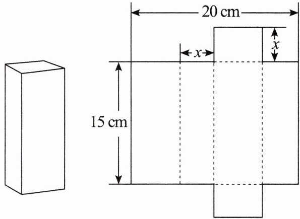 7.将一个容积为$360cm^3$的包装盒剪开铺平,纸样如图所示.利用容积列出图中x(cm)满足的一元二次方程:______(不必化简).