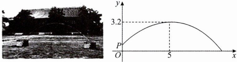 5. 小红看到一处喷水景观,喷出的水柱呈抛物线形状,她对此展开研究:测得喷水头P距地面0.7m,水柱在距喷水头P水平距离5m处达到最高,最高点距地面3.2m;建立如图所示的平面直角坐标系,并设抛物线的表达式为$y= a(x-h)^{2}+k$,其中x(m)是水柱距喷水头的水平距离,y(m)是水柱距地面的高度.