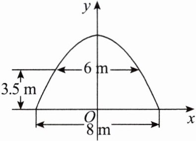 1. 如图,某大门的形状是一抛物线形建筑,大门的地面宽8m,在两侧距地面3.5m高处有两个挂单位名牌匾用的铁环,两铁环的水平距离是6m.若按图所示建立平面直角坐标系,则抛物线的解析式是(建筑物厚度忽略不计)( )