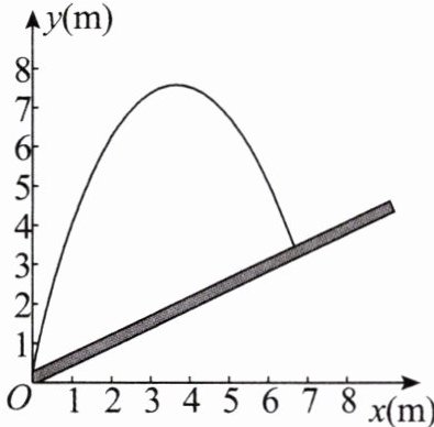 6. 如图,将一个小球从斜坡的点O处抛出,小球的抛出路线可以用二次函数$y= 4x-\frac{1}{2}x^{2}$刻画,斜坡可以用一次函数$y= \frac{1}{2}x$刻画,下列结论错误的是( )