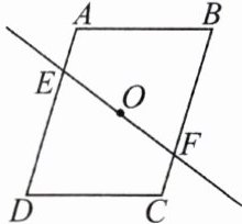 7. 如图,直线 EF 经过□ABCD 的对角线的交点. 若 AE = 3 cm,四边形 AEFB 的面积为$ 15 cm^2,$则 CF = ______,四边形 EDCF 的面积为______.