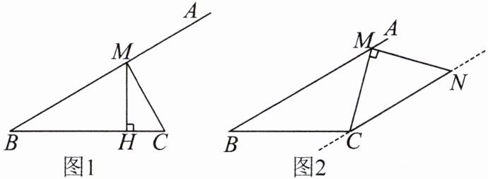 (1)作MH⊥BC,垂足H在线段BC上,当∠CMH= ∠B时,判断点N是否在直线AB上,并说明理由.