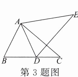 3.如图,将△ABC绕点A逆时针旋转角α(0°<α<180°)得到△ADE,点B的对应点D恰好落在BC边上.若DE⊥AC,∠CAD= 25°,则旋转角α的度数是______.