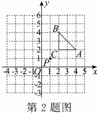 2.如图,将△ABC先向右平移1个单位,再绕点P按顺时针方向旋转90°,得到△A'B'C',则点B的对应点B'的坐标是( )