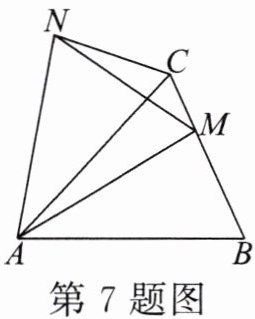7.如图,在△ABC中,AB= AC,若M是BC边上任意一点,将△ABM绕点A逆时针旋转得到△ACN,点M的对应点为点N,连接MN,则下列结论一定正确的是( )
