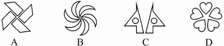 7.在平面内,将一个图形绕一个定点沿某个方向转动一个角度,这样的图形运动称为旋转.下列图形中,不能由其中一个图形通过旋转而构成的是( )